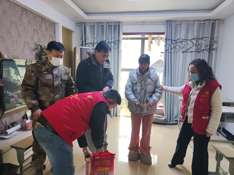 在社區(qū)有關(guān)負(fù)責(zé)同志的陪同下,慰問(wèn)人員挨家挨戶對(duì)困難群體進(jìn)行了走訪,為他們送去米、油等慰問(wèn)品和慰問(wèn)金,并詳細(xì)詢問(wèn)他們的身體情況、工作和生活現(xiàn)狀,叮囑他們一定要保重身體,鼓勵(lì)他們積極面對(duì)生活困難、保持健康樂(lè)觀的心態(tài)。