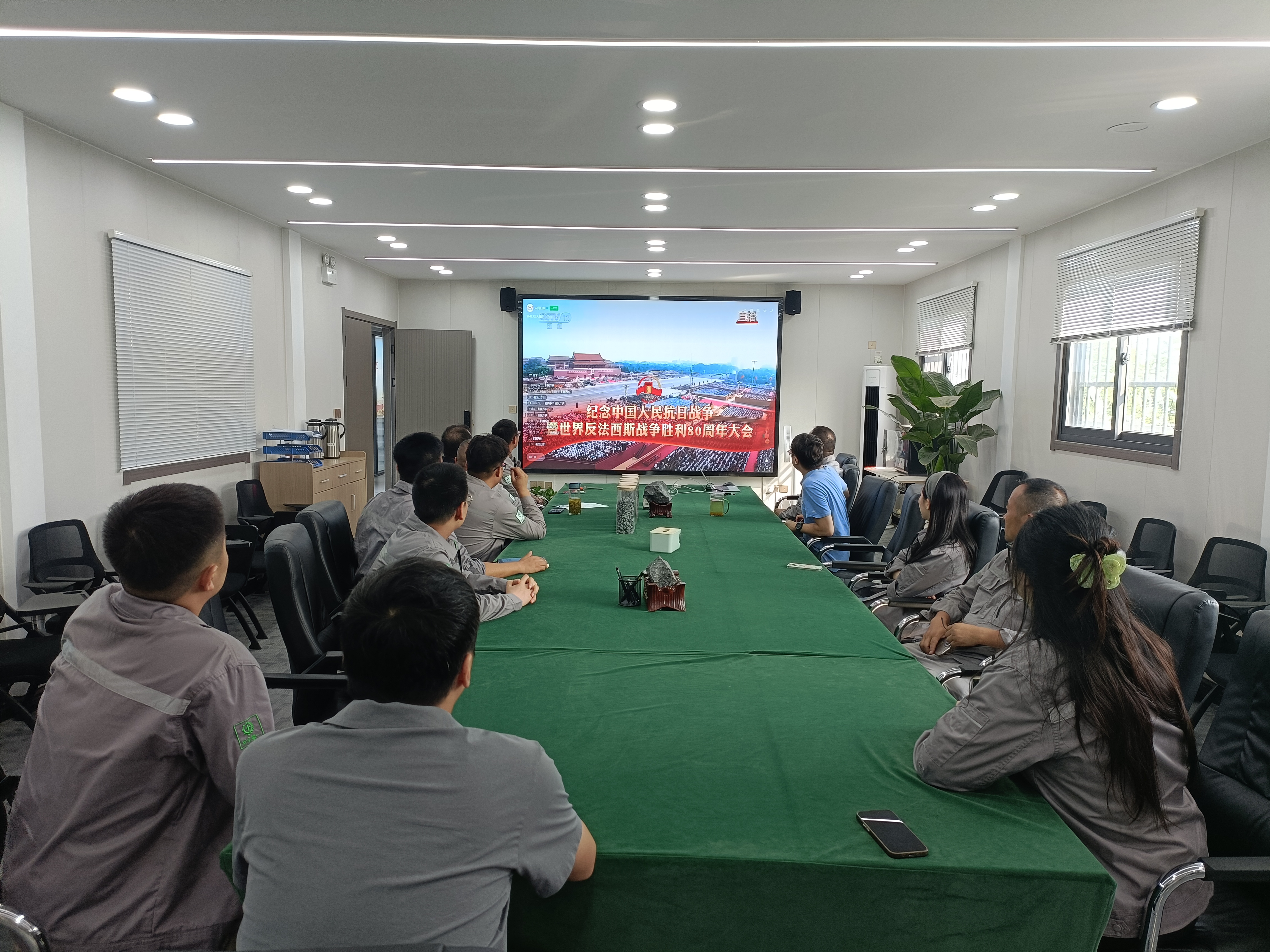 市礦投集團(tuán)組織各子公司集中觀看紀(jì)念中國(guó)人民抗日戰(zhàn)爭(zhēng)暨世界反法西斯戰(zhàn)爭(zhēng)勝利80周年大會(huì)實(shí)況